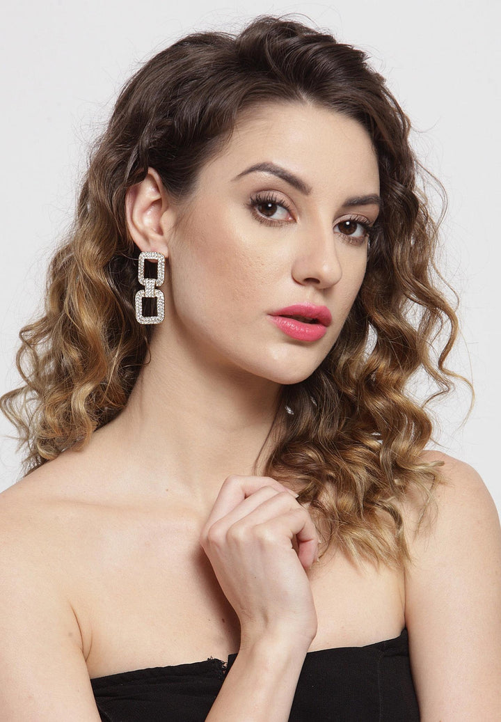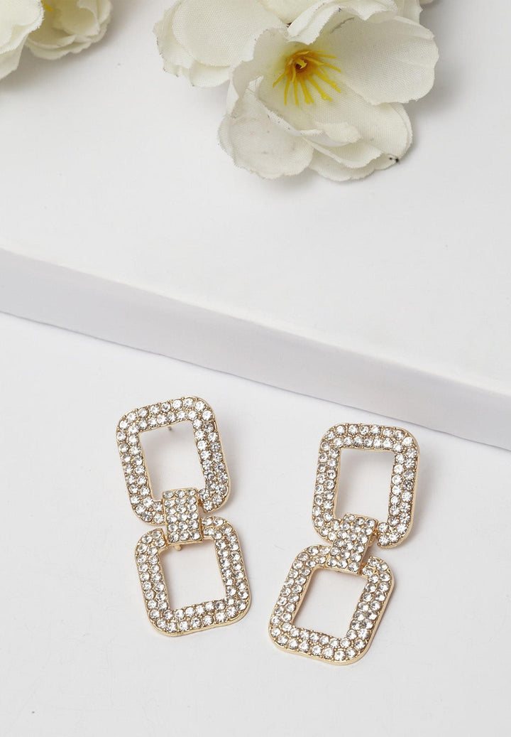 Disse firkantede øreringe i guldkrystal er et slankt og moderne tilbehør, der tilføjer et strejf af geometrisk elegance til dit look. Disse firkantede dråbeøreringe er perfekte til at give din professionelle påklædning et poleret og elegant touch. Kombiner dem med et passende jakkesæt, en ren bluse og pumps for en poleret og forretningsmæssig stil. Det geometriske mønster vil give dit outfit en moderne kant uden at dominere det.