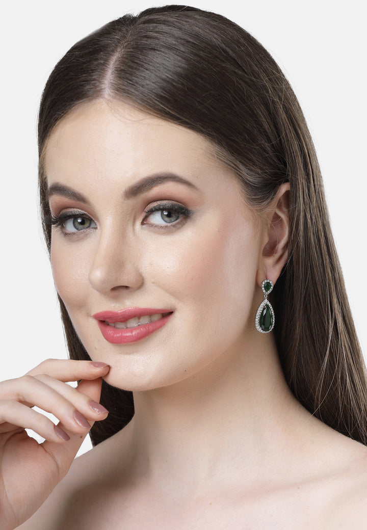 Lassen Sie sich vom bezaubernden Charme dieser grünen Zirkonia-Ohrhänger verzaubern, die mit kunstvoll geschliffenen und polierten Zirkonia-Steinen verziert sind, die für ein strahlendes Funkeln sorgen. Diese Ohrringe ziehen garantiert die Aufmerksamkeit auf sich und werten jedes Outfit auf. Ihre Anpassungsfähigkeit ermöglicht nahtlose Übergänge vom Tages-Chic zum Abend-Glamour und macht sie zu einem unverzichtbaren Teil jeder Schmuckkollektion. Werten Sie Ihr Mode-Ensemble mit diesen exquisiten lilafarbenen Zirkonia-Ohrhängern auf, einem Accessoire, das bei jedem Anlass Raffinesse und Eleganz ausstrahlt.
