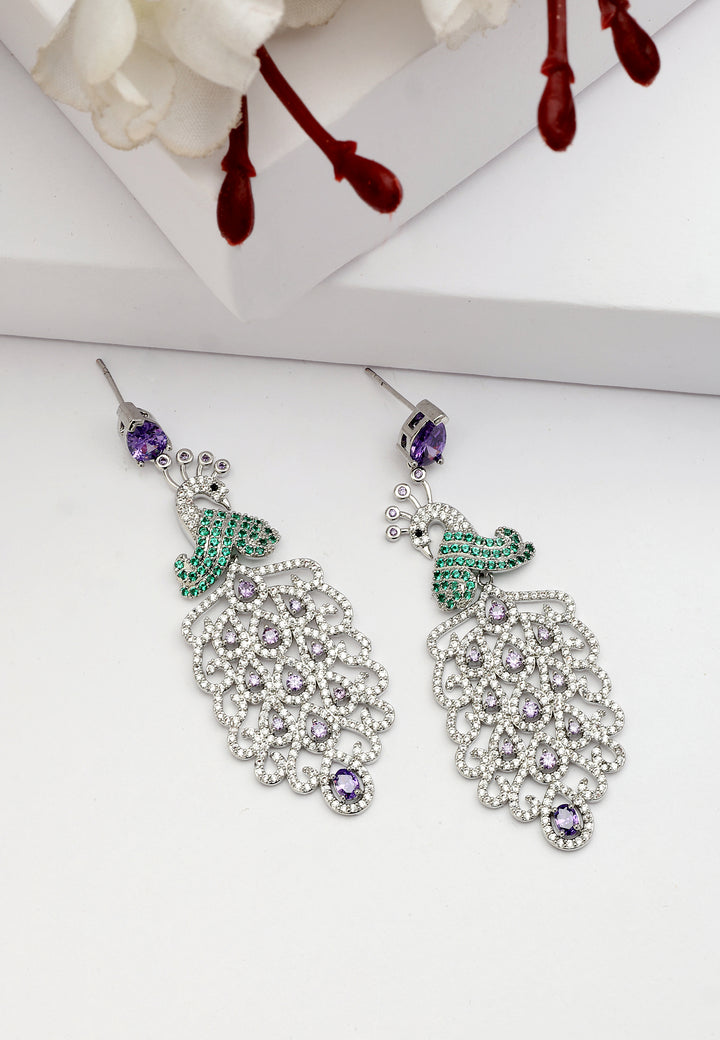Die Diva Beautiful Peacock Drop Earrings aus der Diva Collection zeichnen sich durch grüne und blaue Farbtöne aus, mit einem silbernen Zirkonia-Federabfall, der ein atemberaubendes Accessoire ist. Diese Ohrringe haben wahrscheinlich ein Design, das von Pfauenfedern inspiriert ist, die für ihre lebendigen Farben und komplizierten Muster bekannt sind. Der Federabfall ist aus Silber und verleiht einen Hauch von Eleganz. Tragen Sie diese Ohrringe zu einer einfachen Bluse oder einem Kleid, um Ihrem Alltagslook einen Farbtupfer und Eleganz zu verleihen. Das von Pfauen inspirierte Design macht sie zu einem auffälligen Accessoire für Tag und Nacht. Diese Ohrringe werden mit Sicherheit ein herausragendes Stück in jeder Schmuckkollektion sein.