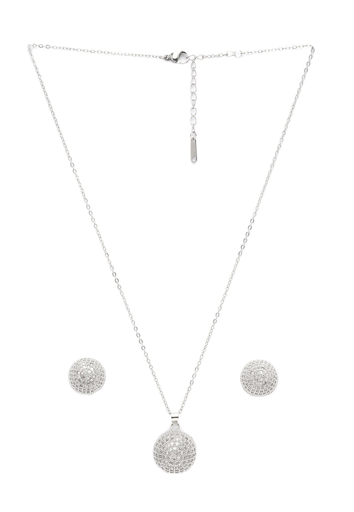 Strahlen Sie zeitlose Schönheit mit diesem atemberaubenden Schmuckset aus, das ein faszinierendes Kugeldesign präsentiert, das Raffinesse und Charme ausstrahlt. Der Anhänger zeigt eine perfekt gestaltete Kugel, die mit schimmernden Steinen verziert ist und einen strahlenden Mittelpunkt schafft, der das Licht wunderschön einfängt. Die passenden Ohrstecker ergänzen die Halskette und spiegeln die Eleganz des Anhängers mit ihrer funkelnden, kugelförmigen Form wider. Perfekt für formelle Anlässe und den Alltag, verleiht dieses Set jedem Outfit einen Hauch von Glamour und lässt Sie mit müheloser Anmut strahlen.