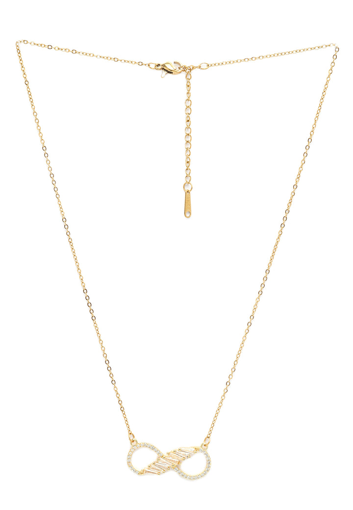 Umarmen Sie zeitlose Eleganz mit dieser strahlenden Unendlichkeitshalskette! Das schlanke, goldfarbene Unendlichkeitssymbol ist mit funkelnden Steinen verziert, die bei jeder Bewegung schimmern. Das zarte Design strahlt Raffinesse aus und repräsentiert unendliche Liebe, Hoffnung und Möglichkeiten. Perfekt für den Alltag und besondere Anlässe, ist dieser Anhänger eine bedeutungsvolle und stilvolle Ergänzung für jede Schmuckkollektion.