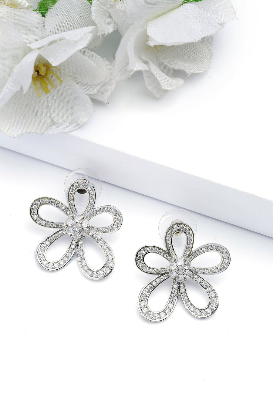 Estos encantadores pendientes de flor con perno presentan un delicado diseño de calado. Cada pétalo está contorneado con cristales brillantes, que conducen a un cristal central más grande que capta...