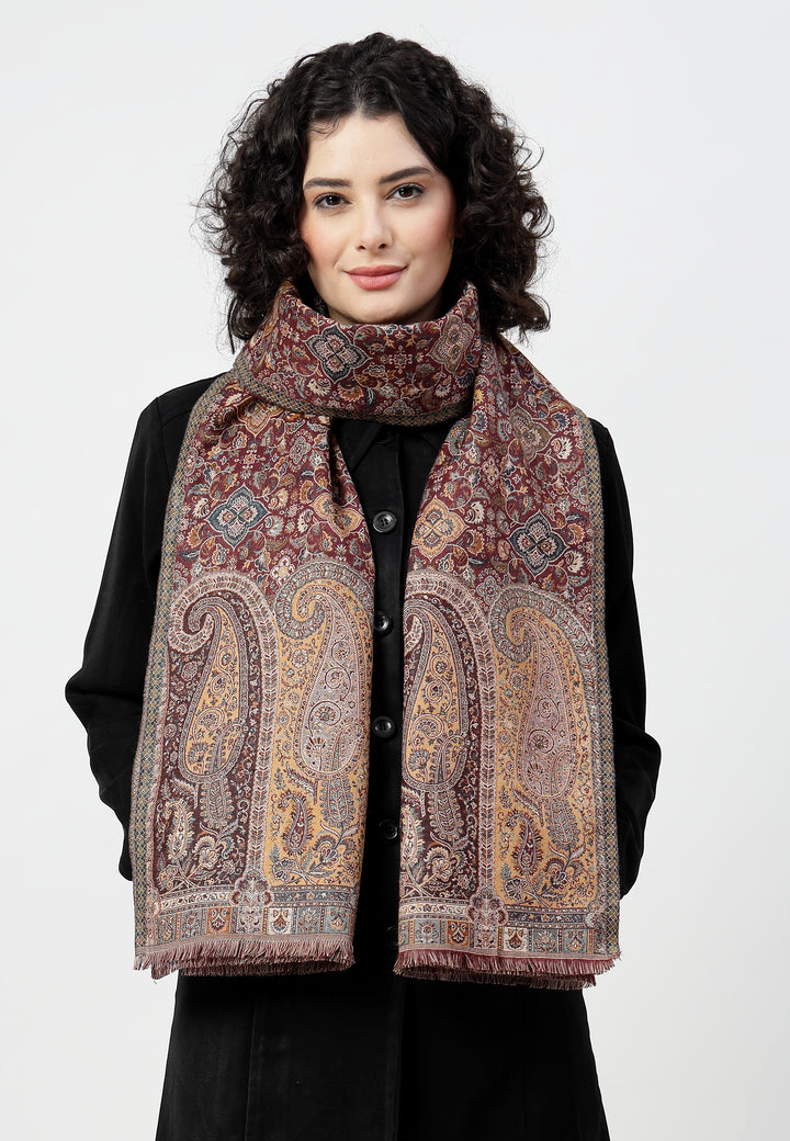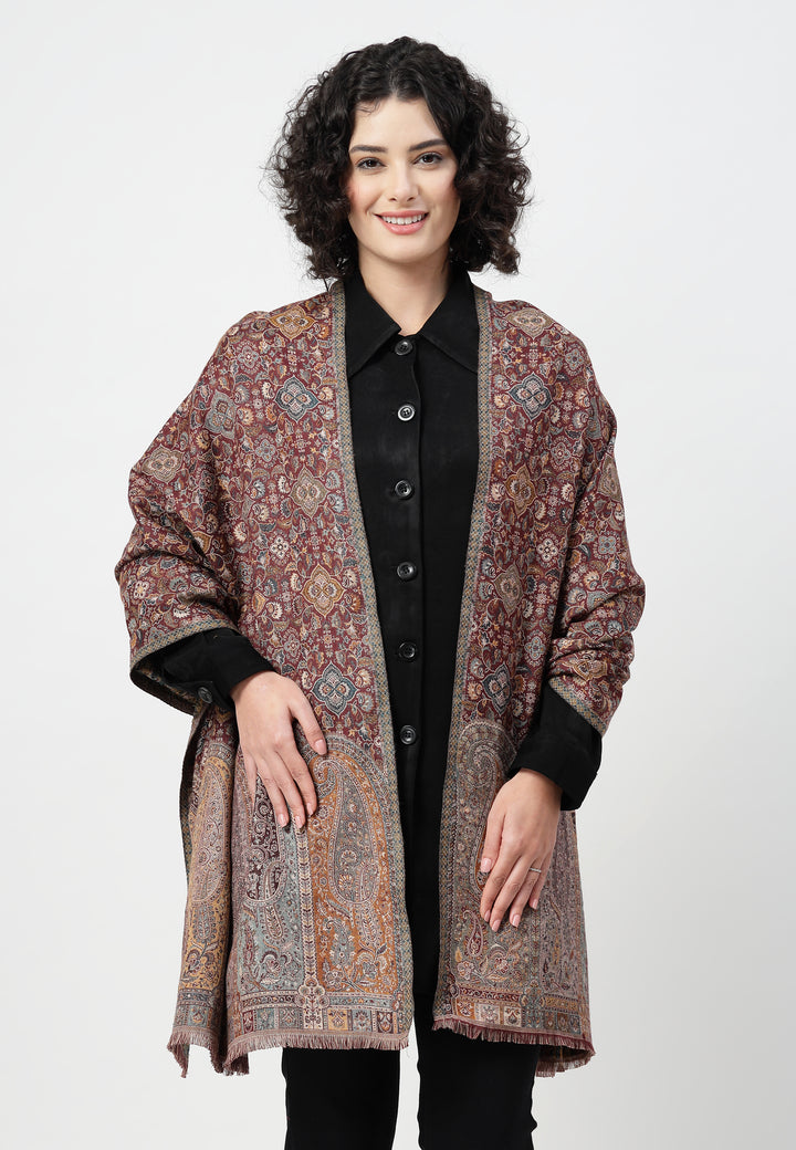 Hermosos diseños de Jamawar, en una suave tela de pashmina sintética y arte tradicional. Popular desde la era Mughal. Este chal tradicional de estilo cachemir tiene un diseño intrincado y calidad.