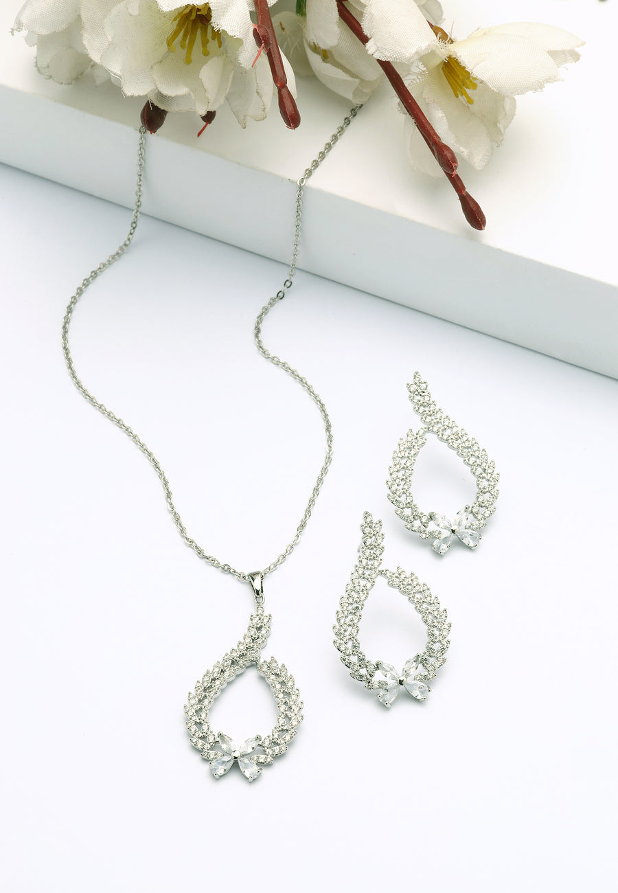 Höpsö Perhonen Korvakorut ja Kaulaketju Setti