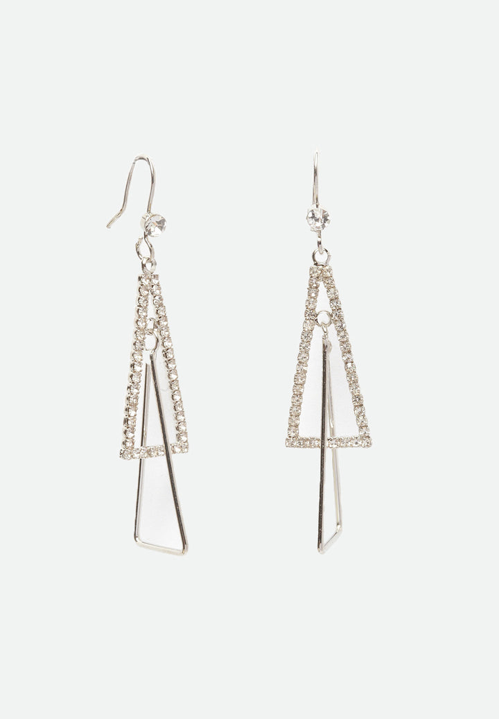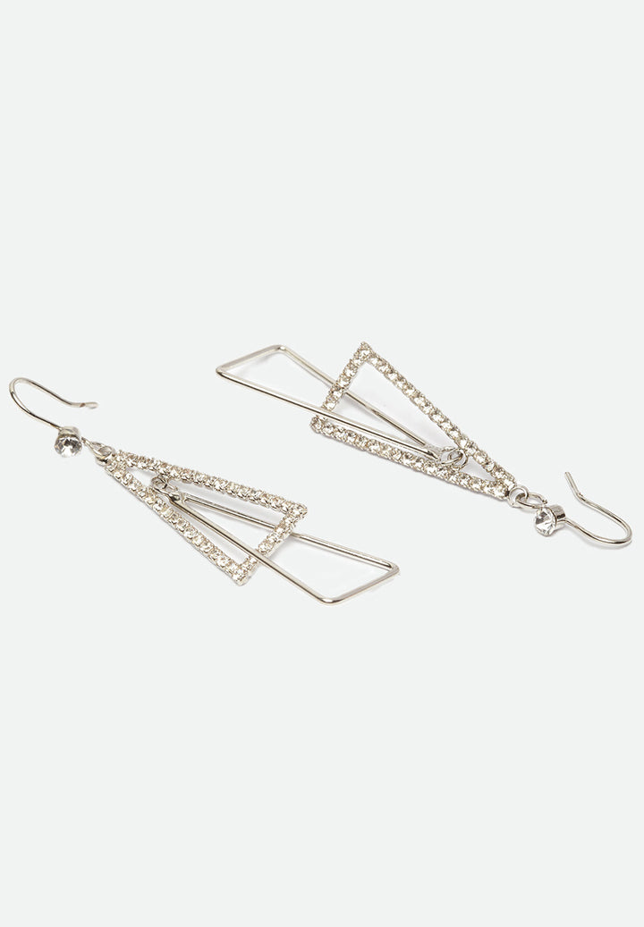 Geometriset korvakorut on valmistettu kiteistä ja päällystetty rodiumilla. Kolmion muoto ja kerrostus antavat soireelle symmetrisen ja tyylikkään ilmeen sekä juuri oikean määrän kimaltelua. Tämä voidaan yhdistää muodolliseen tapahtumaan tyylikkään ilmeen saamiseksi.