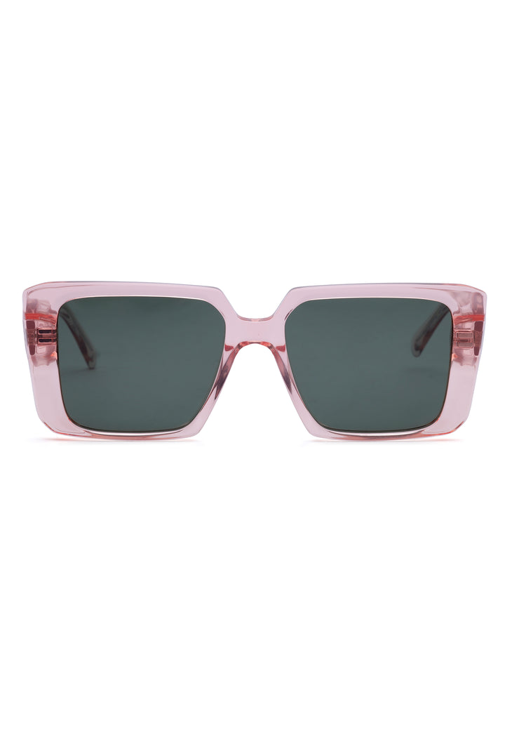 Nämä rohkeat, läpikuultavat neliönmuotoiset kehykset tekevät näyttävän tyylilauseen veistoksellisella muotoilullaan ja nykyaikaisella särmällään—täydelliset trendikkäisiin asuihin ja ilmeikkäisiin kesätunnelmiin.