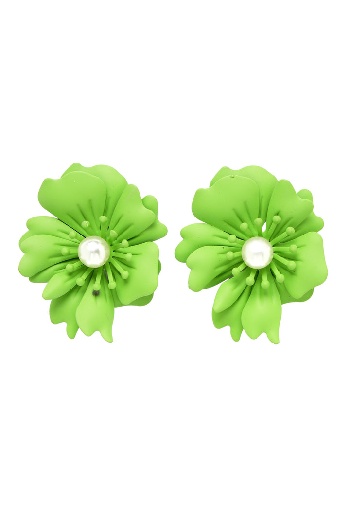 Boucles d'oreilles à tige en perles florales, vert matcha
