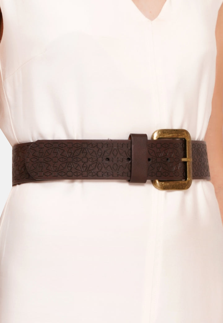 Is é an Crios Leathan Donn Fíorálainn ná gabháil gan am agus galánta a léiríonn sofaisticiúlacht lena dhath saibhir donn agus dearadh leathan, tarraingteach. Déanta as leathar ardchaighdeáin nó ábhar réidh, cuireann an crios seo teagmháil galántachta le haon éadaí. Ní hamháin go gcuireann a leithead leathan béim ar an mbolg ach cuireann sé struchtúr le do chuma freisin, rud a fhágann go bhfuil sé ina phíosa ilúsáidte do ócáidí neamhfhoirmiúla agus foirmiúla araon. Cuir an crios ort le blús stíl bhohéimeach scaoilte nó le gúna maxi.