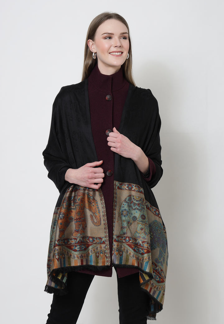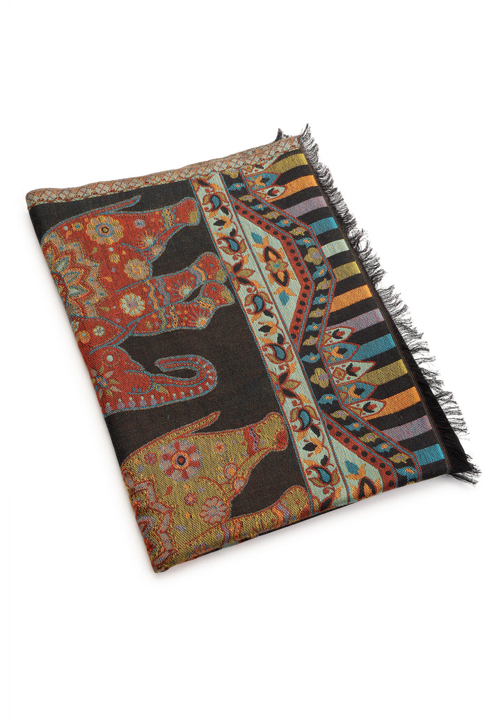 Dearg Jamawar deara, ar fabraic faux pashmina bog agus ealaín thraidisiúnta. Coitianta ó ré na Mughal. Tá an stole traidisiúnta Kashmiri seo le dearadh casta agus cáilíocht.