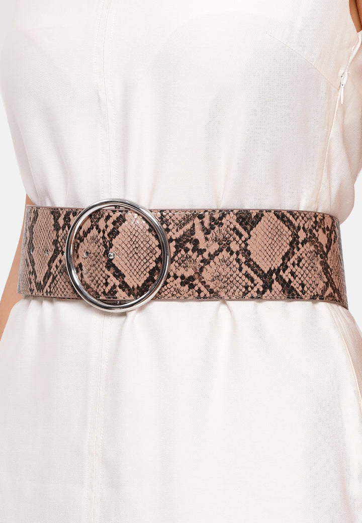 La Cintura a Doppia Fibbia con Stampa Serpente in Marrone è un accessorio audace e alla moda che unisce una texture esotica a un design elegante e moderno. Il motivo a stampa serpente aggiunge un livello di intrigo e carattere, mentre la caratteristica a doppia fibbia le conferisce un aspetto unico e di grande impatto. Le ricche tonalità di marrone la rendono versatile, facilmente abbinabile a una varietà di outfit, dallo stile casual a quello più elegante. Questa cintura è il modo perfetto per aggiungere un tocco di texture e personalità al tuo guardaroba. La Cintura a Doppia Fibbia con Stampa Serpente in Marrone è perfetta per chi desidera aggiungere un tocco esotico e alla moda al proprio outfit.