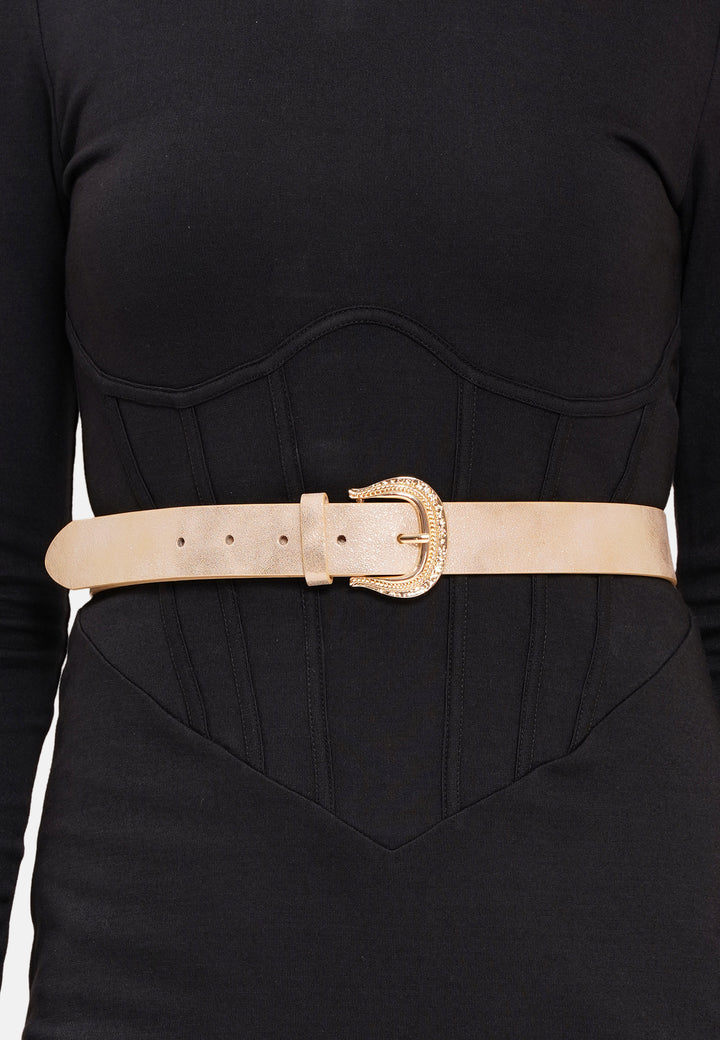 Klasyczny, ponadczasowy biały pasek z złotą retro klamrą emanuje bezwysiłkową elegancją i wyrafinowaniem, łącząc gładki, wysokiej jakości skórzany pasek z wyrazistą złotą klamrą, która wprowadza retro, inspirowany stylem vintage urok. Czysty, prosty design paska sprawia, że jest to wszechstronny element, który można łatwo ubrać na elegancko lub na co dzień, podczas gdy złota klamra dodaje odrobinę wyrafinowanego luksusu do każdej stylizacji. Dodaje odrobinę luksusu inspirowanego stylem vintage do ich garderoby, niezależnie od tego, czy jest to strój profesjonalny, casualowy, czy wieczorowy.