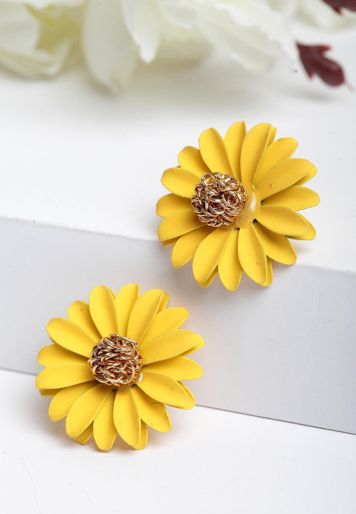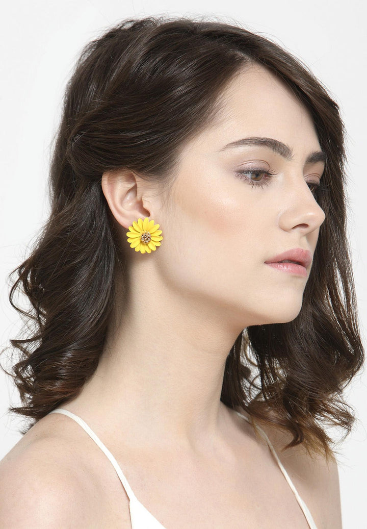 Our delightful Flower Stud Earrings in a lovely yellow tint will add a lively flash of color to your accessory collection. These earrings are ideal for any occasion because they are made to add a dash of fun and liveliness to your everyday look. Pair these yellow flower stud earrings with a white or light-colored sundress for a fresh and summery look. Complete the outfit with a straw hat and sandals for a stylish, laid-back vibe.