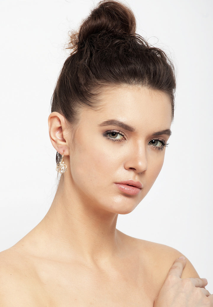 La rose en gold - Gold-plated earrings with crystals in a flower shape. Pair with formal attire or with a rose-colored dress perfect for a date night.