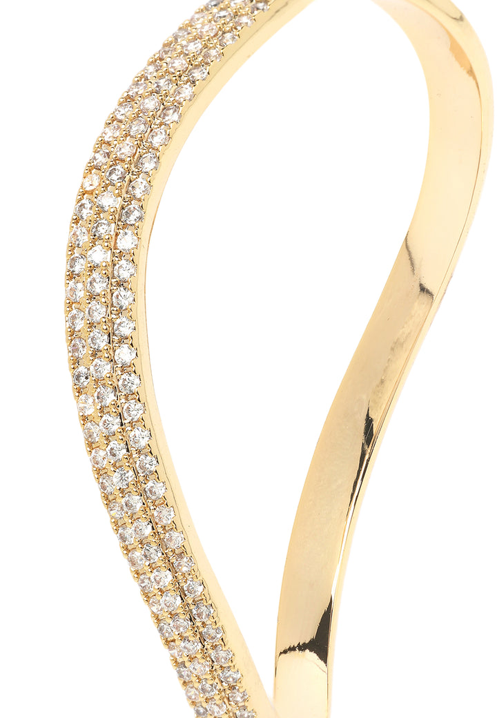 The elegant curve of the band, encrusted with a dazzling array of sparkling stones, creates a captivating and unique look. The warm, golden hue adds a touch of sophistication, making it the perfect accessory to elevate any outfit.