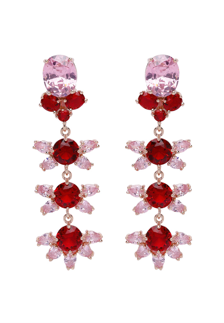 The Diva Floral Dangle Earrings from the Diva Collection are a stunning expression of elegance and vibrant beauty. These earrings feature an exquisite floral design, adorned with sparkling cubic zirconia stones in captivating shades of light pink and red. The high-quality cubic zirconia stones are durable and long-lasting, maintaining their sparkle and vibrancy over time. These earrings are a standout accessory. They are ideal for adding a touch of glamour to any outfit, making them a must-have addition to any jewelry collection.