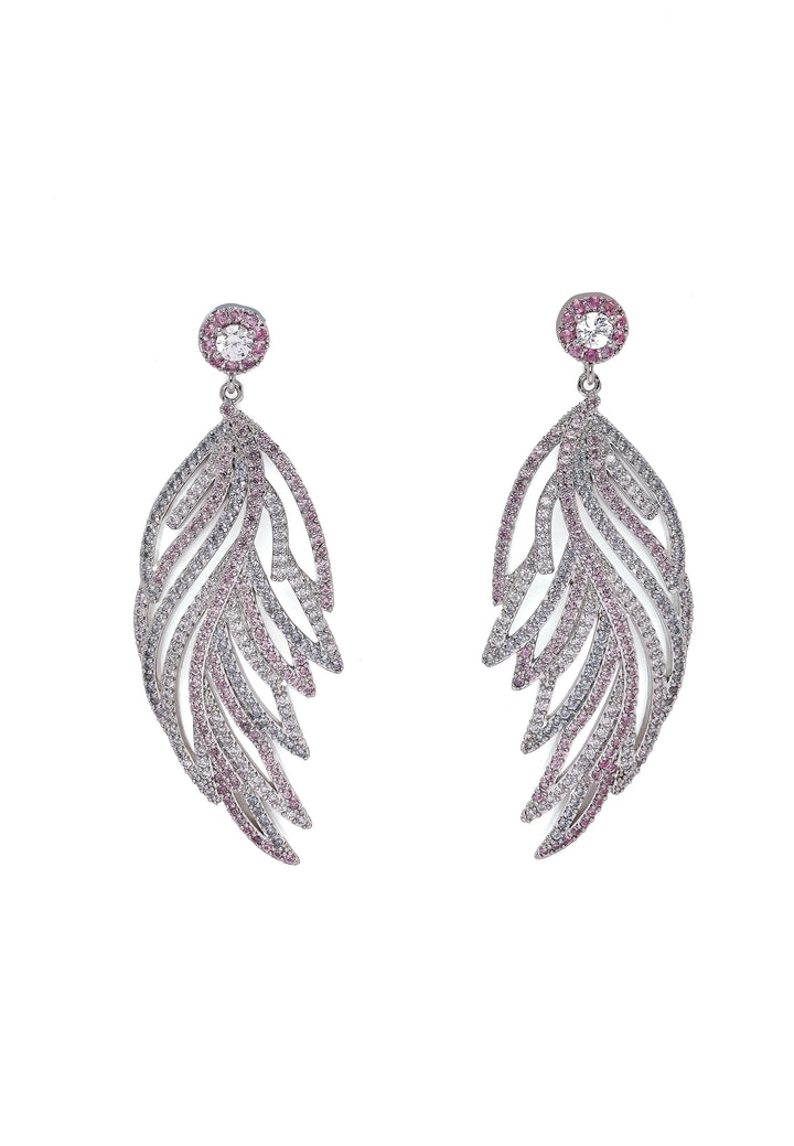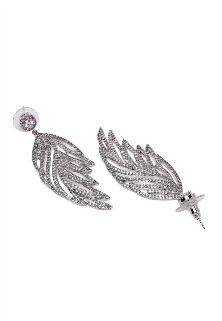 The Diva Leaf Shaped Western Drop Earrings from the Diva Collection, featuring silver cubic zirconia material, likely embody a charming aesthetic. These earrings are crafted in the shape of delicate leaves. The cubic zirconia stones, in silver color, provide brilliant sparkle to the earrings. These earrings are versatile and suitable for various occasions, from casual outings to formal events. They can add a touch of nature-inspired elegance to any ensemble. These earrings are a timeless and elegant accessory.