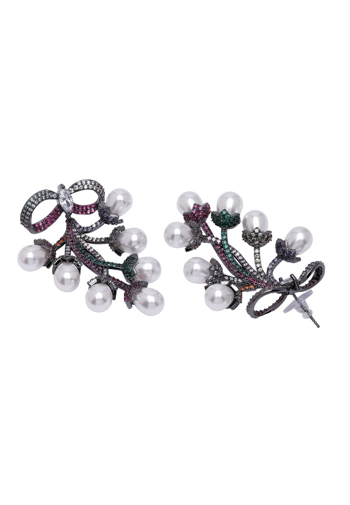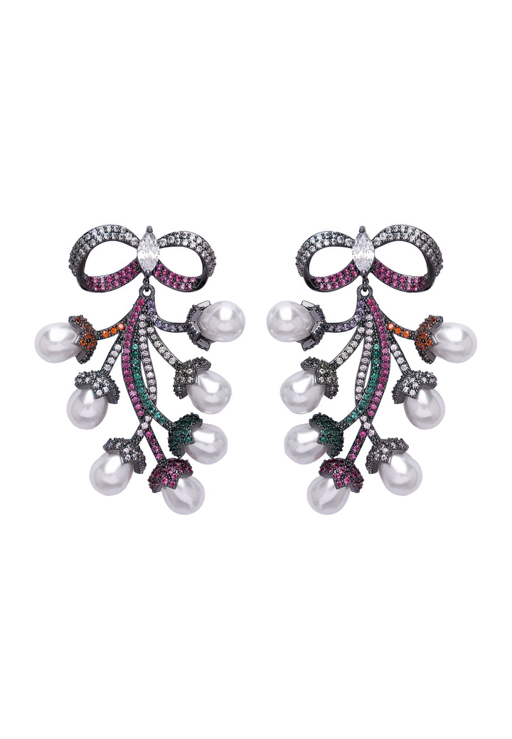The Diva Bow-Shaped Grapevine Drop Earrings from the Diva Collection, with white cubic zirconia material, feature a bow-shaped element that holds a grapevine-inspired drop design. The bow adds a playful and elegant touch, while the grapevine drops evoke a whimsical aesthetic. The grape-shaped drops are adorned with white cubic zirconia stones, adding sparkle and elegance to the design. Pair these earrings with a simple blouse or dress to add a fun and colorful accent to your outfit. These earrings are sure to be a lively and delightful addition to any jewelry collection.