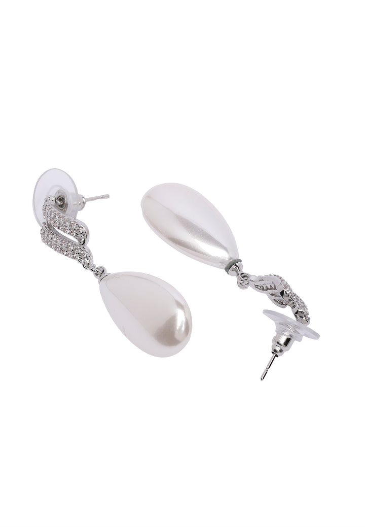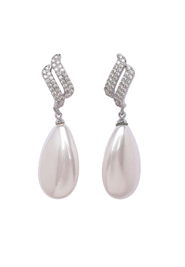 These earrings are a captivating blend of classic and contemporary style. A delicate, sparkling design suspends a lustrous pearl, creating a look that is both elegant and unique. They're perfect for adding a touch of sophistication to any outfit.