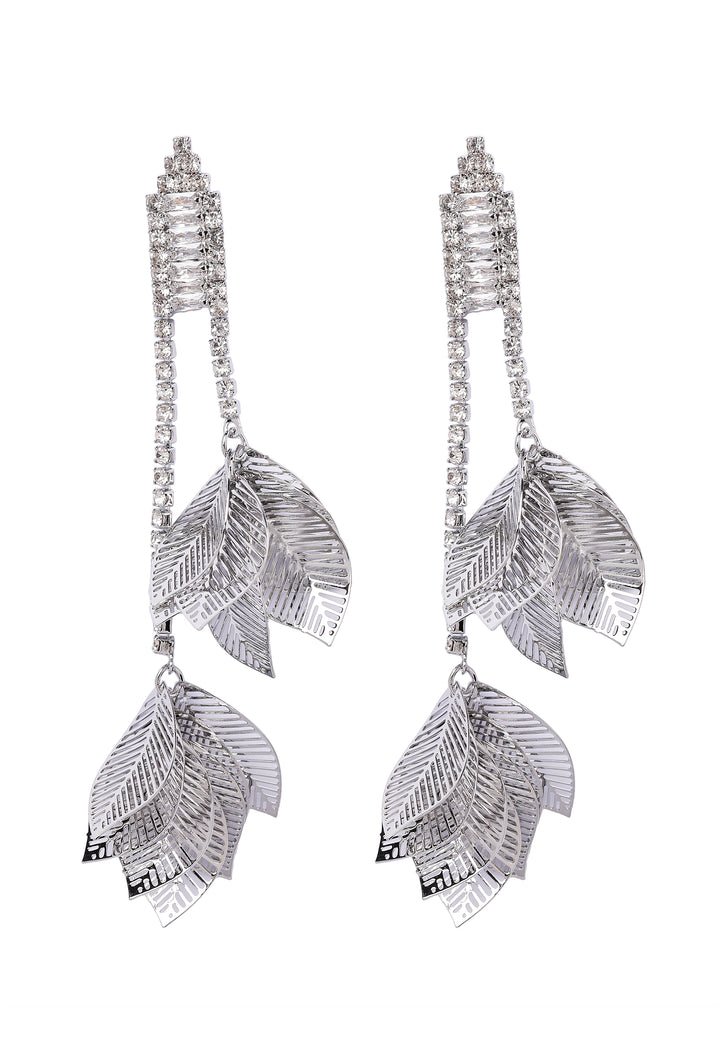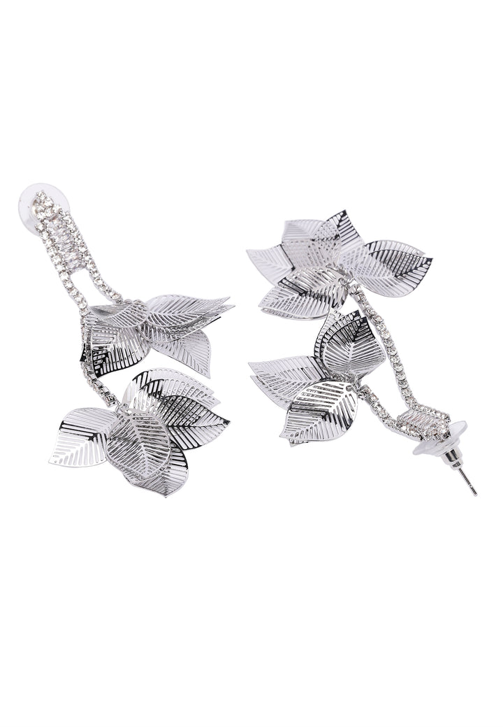 Graceful leaves, embellished with sparkling crystals, flow elegantly to create a mesmerizing and enchanting appearance. These earrings make a bold statement, radiating sophistication and charm, and are perfect for bringing a touch of nature-inspired beauty to any look.