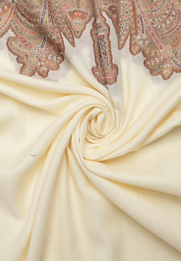 Beautiful Jamawar designs, on a soft faux pashmina fabric and traditional artwork. Popular since the Mughal era. This traditional Kashmiri style stole has intricated design and quality.