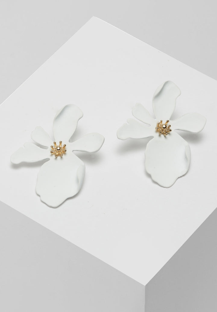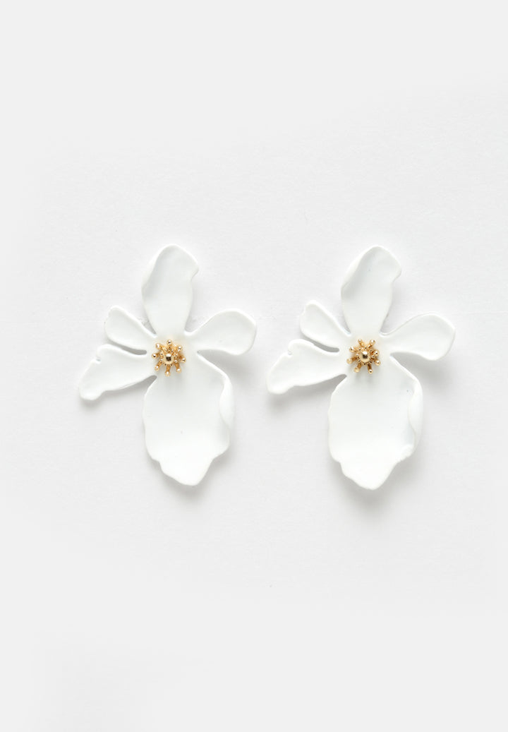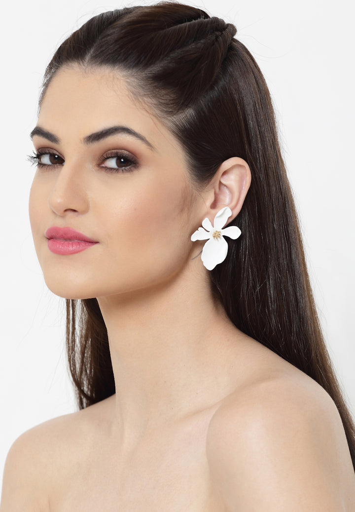 Featuring large and intricate flower designs, these earrings are a true showstopper. These earrings add a playful touch, while the size of the flowers ensures that they catch attention and become a focal point of your look. The lightweight construction ensures comfortable wear, allowing you to showcase your style effortlessly. The white color of these earrings exudes a sense of warmth and joy, making them perfect for adding a cheerful and playful touch to your wardrobe. They complement various colors and outfits, allowing you to create versatile and fashionable combinations.