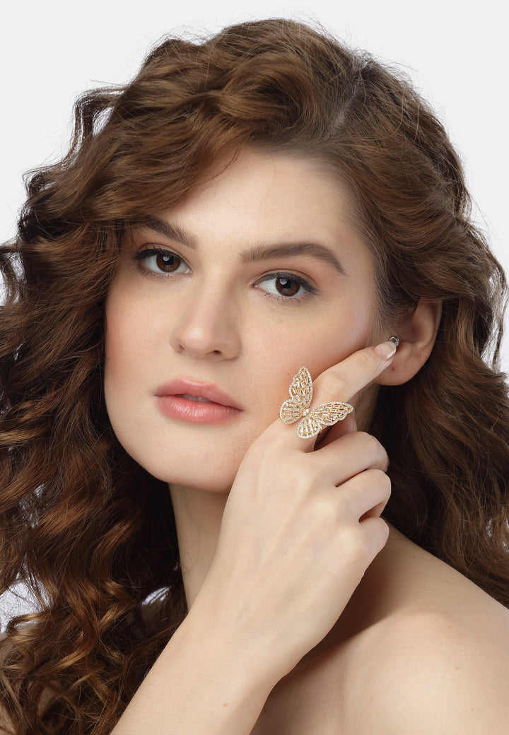 The warm, golden hue of the metal adds a touch of luxury and sophistication. It's a captivating masterpiece, a unique and enchanting accessory that will turn heads wherever you go. This ring is a statement piece that exudes elegance and playfulness, perfect for adding a touch of whimsy and sophistication to any outfit.